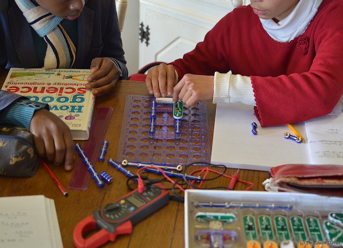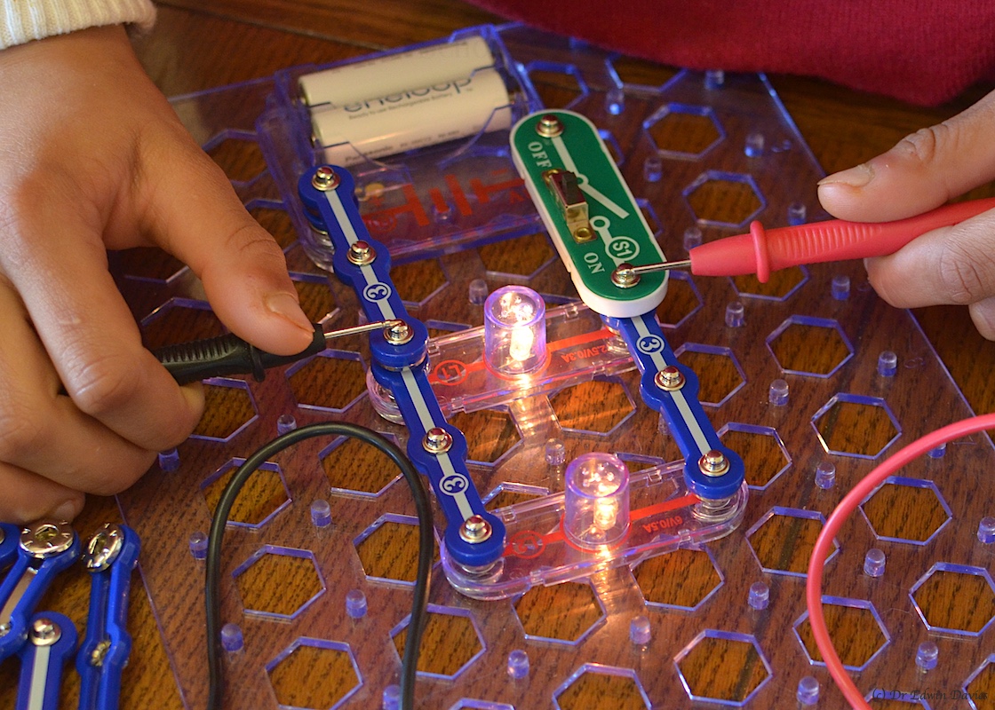 Setting up using the Snap Circuits kit plus our school multimeter for voltage measurements