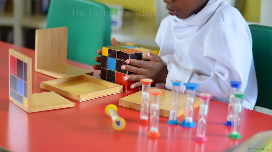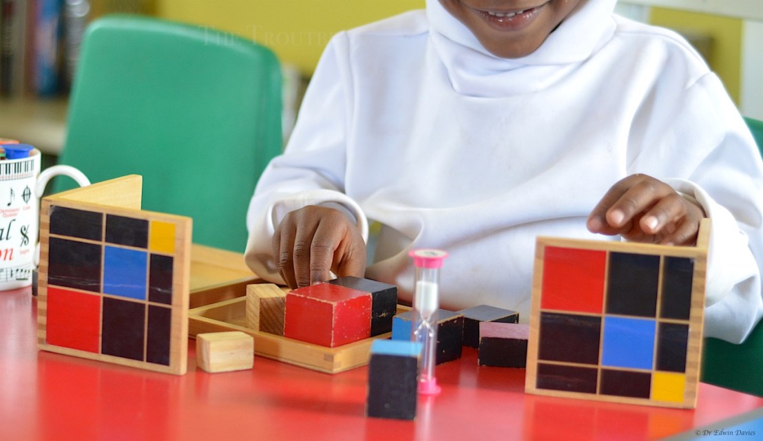 This five year old sets his own personal challenges – putting the trinomial cube together correctly whilst timing himself. Note that this type of challenge is created by the child not the educator – we were there to observe it happening and see his enjoyment!