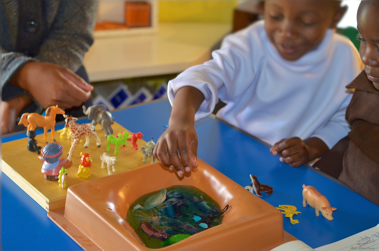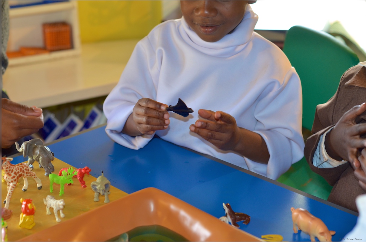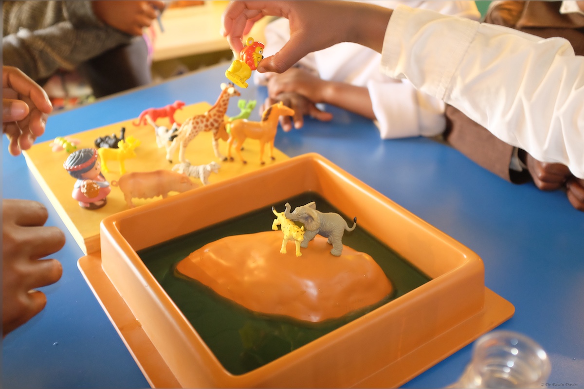 Here our young students are identifying land animals and animals living in the water – starting with African land animals, finally the poor sting ray is singled out!