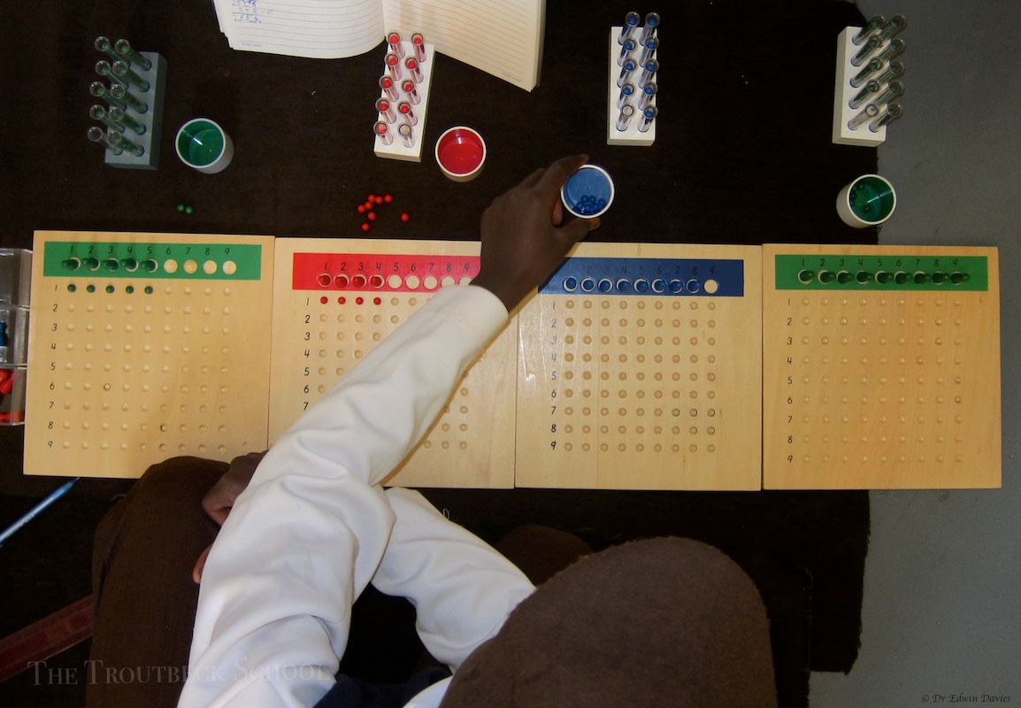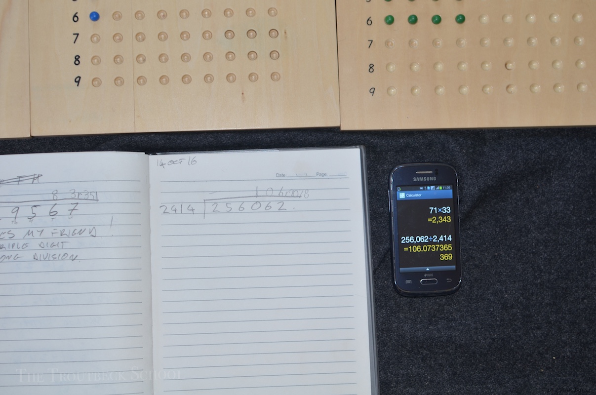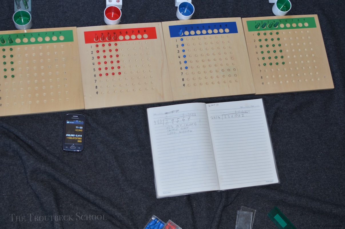 Being Montessori there is a fiendishly clever way of learning how long division works. Here it is an action with new students doing up to 4 digit long division sums correctly using the materials then migrating to pencil and paper!