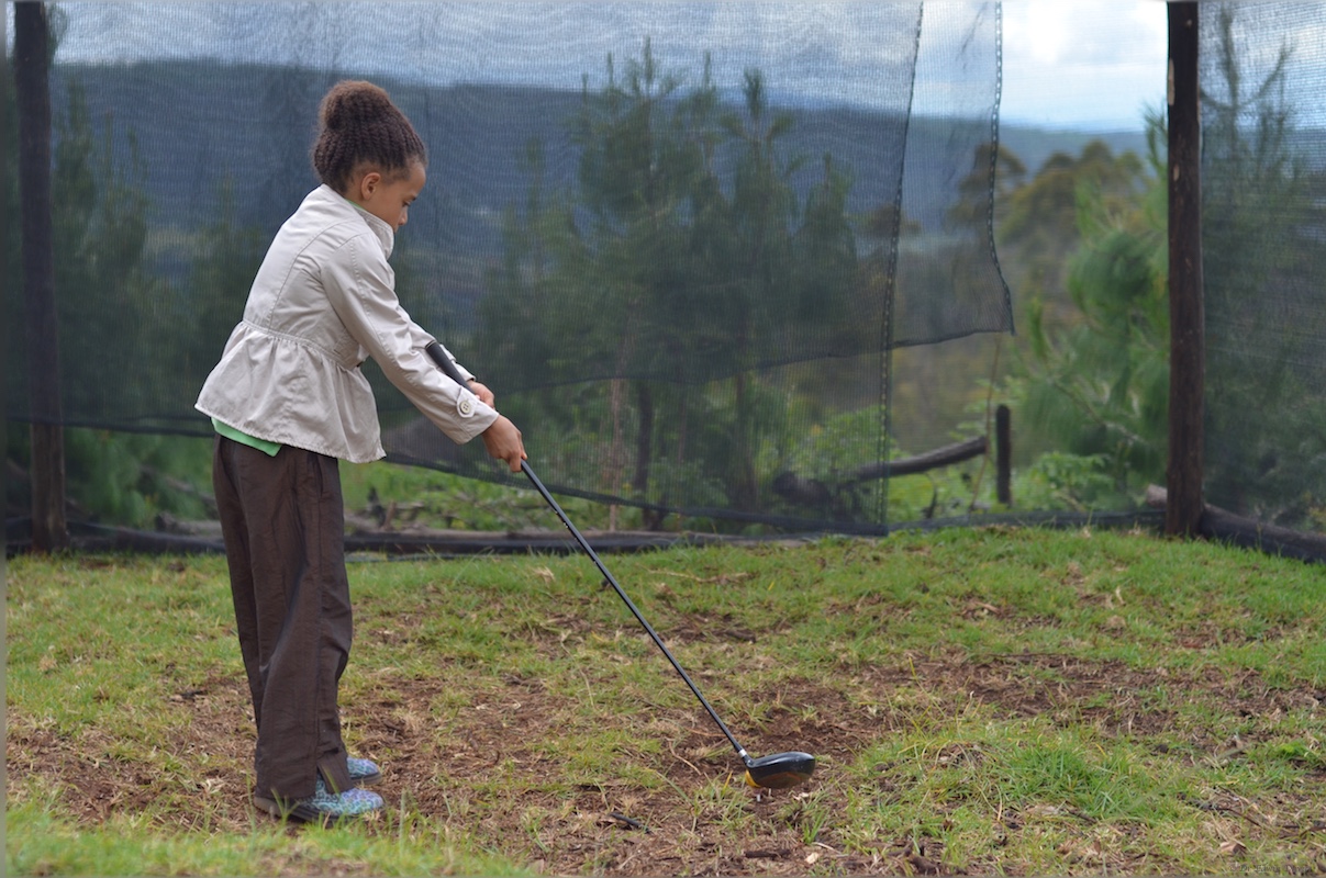 Our resident young professional shows us how its done, but our golfers young and old, big and small can improve their swing here whenever they want.