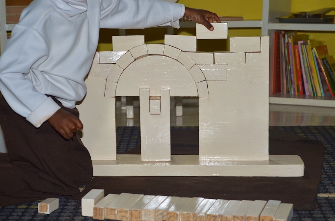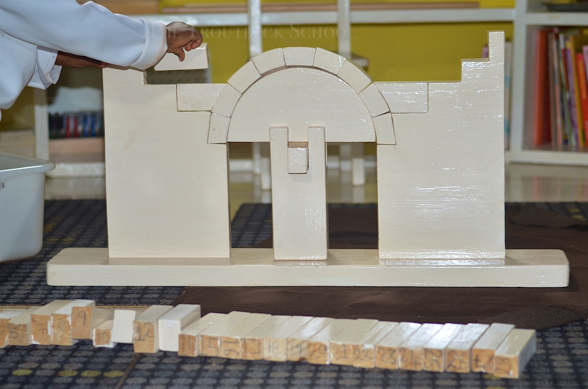 As ‘Montessorians’ we built our own Roman Arch machine. This allows a student to build her or his own arch – remove the ‘centring’ or falsework that supports the arch during construction and… actually pass under their own Roman Arch!